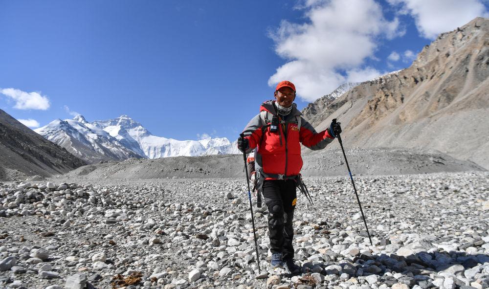 這是珠峰科道具製作考登頂隊隊長扎西平措(5月18日攝)。新華社記者 晉美多吉 攝