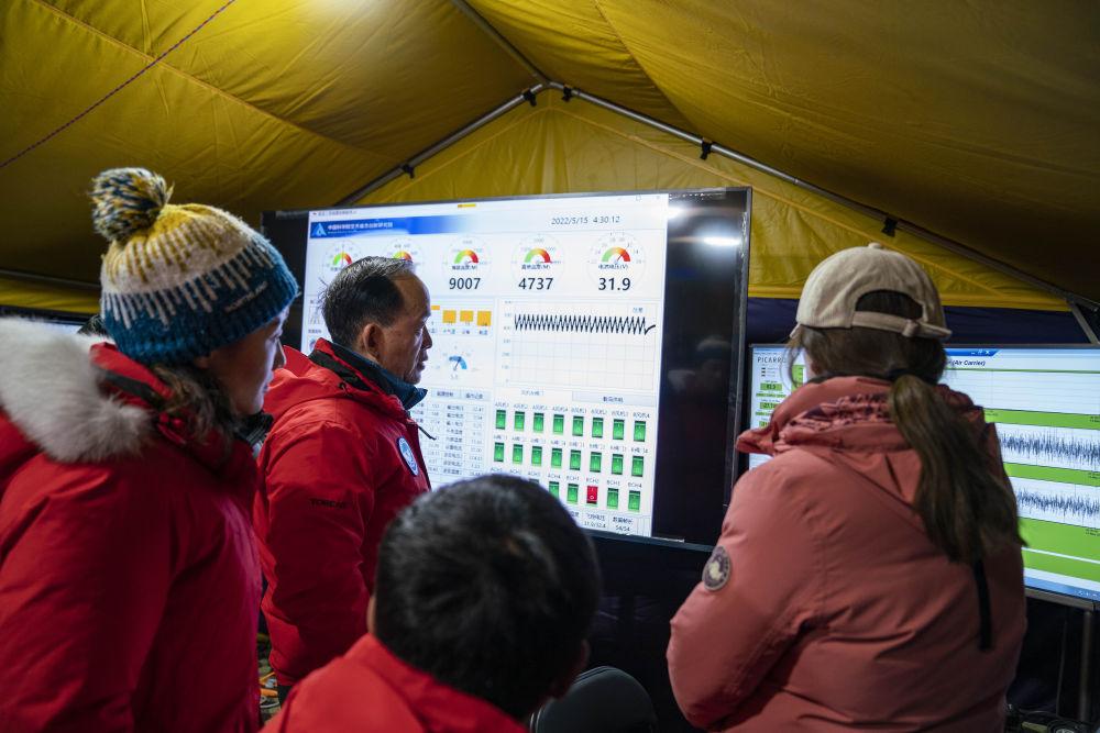 在海拔5200米的珠峰大本營科考指揮帳里,科考登頂隊員每完成一項任務,科學家和工作人員都報以熱烈的掌聲、喝彩聲。